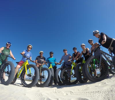 When reaching the dunes we will make our way up and across to reach a fantastic downhill section where we will pick up speed before reaching the top of our first vertical dune face. After a briefing on how to ride down the dune we down the face but for those just wanting an easy ride you can go around the side where it is an easy slope. The dune face may feel impossible and dangerous to do but the ride is in fact very controlled and the sand will slow the bike down.
