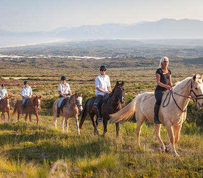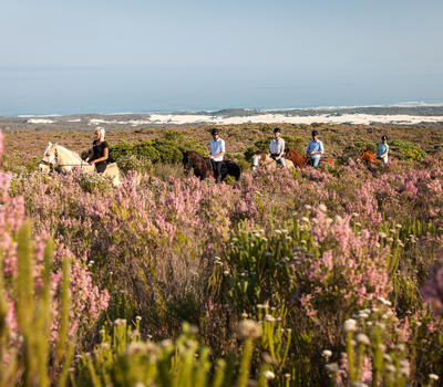 This is the ultimate ride from Grootbos Nature Reserve down the mountain to the top of the Sand Dunes. The trail to the dunes is special, running on a narrow sandy horse trail through the Fynbos.