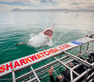 This is truly one of the most adventurous activities on our planet, coming face to face with the Great White Shark. No diving experience is required, and all equipment is provided on board. When the sharks are around the boat, the divers get into the cage and the shark is lured to within meters from the cage. As the shark approaches, divers duck under water and marvel in amazement as this awe inspiring creature swims past the cage.