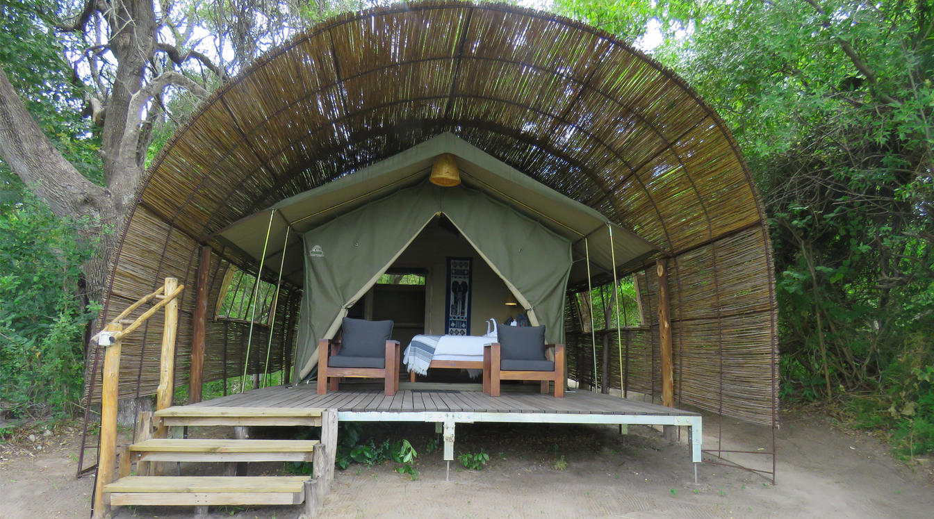 Our two chalets have double beds, a shower and toilet en-suite and a private verandah overlooking the water channel. Guests making use of this accommodation will be fully catered for in our tented camp.