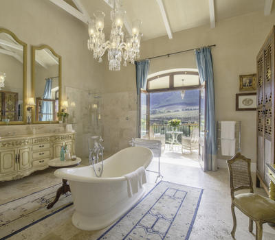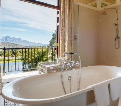 With 100 square meters of opulence, these suites are as elegant as they are large. Each individually designed by Liz Biden, their interiors boast a variety of exciting ornaments and furnishings, setting the scene for an unforgettable vacation in the Cape Winelands.