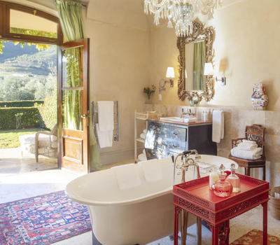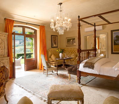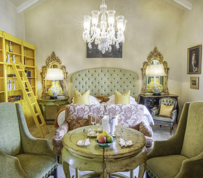 The entry-level suites offer a spacious 90 square meters of majestic, eclectically decorated floor space, an en suite bathroom, and private balconies with beautiful views of the surrounding estate.