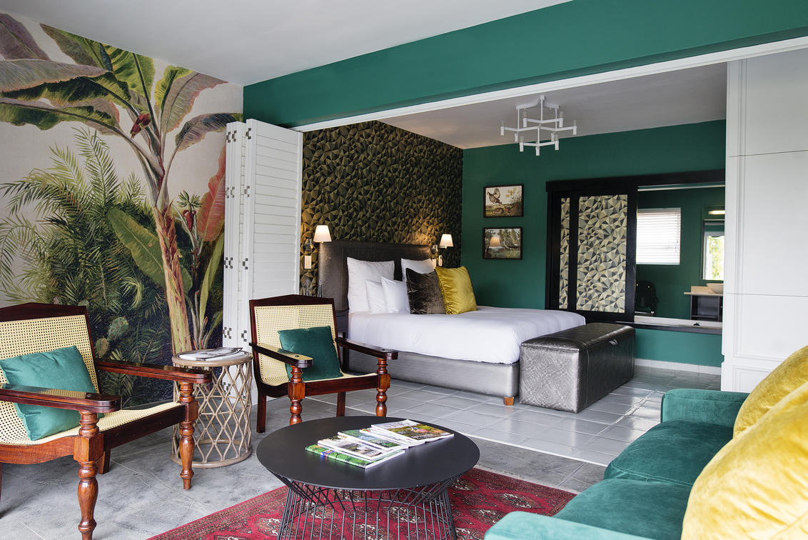Two of our Poolside Rooms combine open-air living with ingenious indoor space. The two of each Poolside Rooms share a 10m private lap pool nestled in their private little forest & petrol blue sun loungers. These rooms are abundantly outsized, comfortable, luxurious and generously equipped with supreme soft linen, thick towels, lavish amenities, a flat screen TV that can be watched from the bath, a Lavazza coffee machine and a unique honesty bar selection The other 2 x Poolside Rooms are located in a private adjacent building and share a private pool