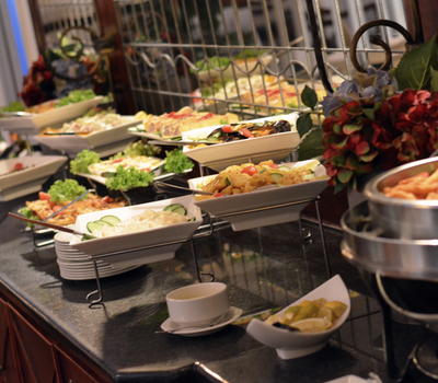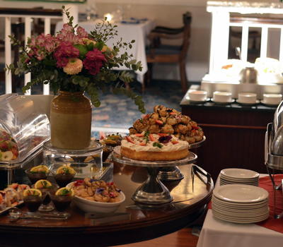 Enjoy a sumptuous full English breakfast or an expertly prepared 3 Course Buffet Dinner in this attractive light and airy restaurant enhanced by exotic stained glass windows and sky feature.