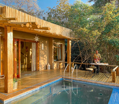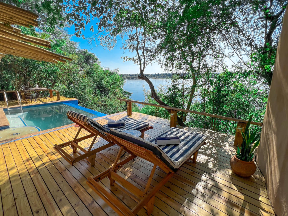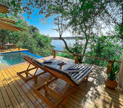 The Dog House personifies the Tonga ethos of exclusivity, romance and luxury with a twist of quirkiness. Located at the very end of the elevated garden path, this private haven sits on three large wooden decks over the Zambezi river. Recently extensively refurbished, the house remains magnificently proportioned and now has two beautiful bedrooms to accommodate small groups and families. The sprawling space includes a central designated chill zone with an infinity pool, extended deck, large lounge and cozy dining room. Whether you manage to venture out to enjoy the inclusive activities, dabble in serious adventure – or simply elect to order the massages in - the brand new Dog House is so much more than a beautiful, African Fusion style accommodation choice... it is the experience of a life time.