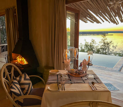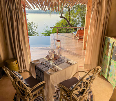 Built with the perfect view, indulgence and privacy in mind the Honeymoon House is the original blueprint for luxury Tongabezi accommodation. The private balcony overlooks the river, providing a perfect setting for a secluded candlelit dinner beneath the stars. Alternatively, you can choose to dine with our other guests on one of the river decks.