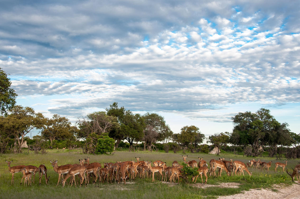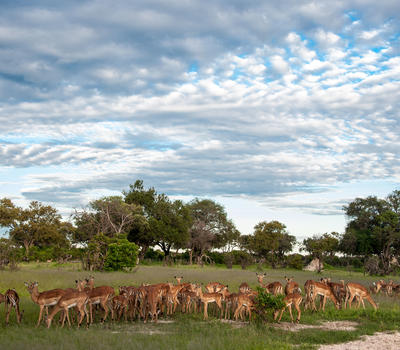 Wilderness Little Vumbura is situated in the Vumbura Private Wilderness Area, known for its scenic beauty and diverse wildlife, and a concession which is leased from nearby rural communities. Ecotourism activities here thus help communities benefit from conservation. Morning and afternoon game drives allow you to take in the plains game and predators that inhabit the area in good numbers. Key mammal species may include seasonal herds of elephant and buffalo, sable antelope, zebra, wildebeest, tsessebe, lechwe, giraffe, lion, leopard, African wild dog, spotted hyaena, and occasionally cheetah.