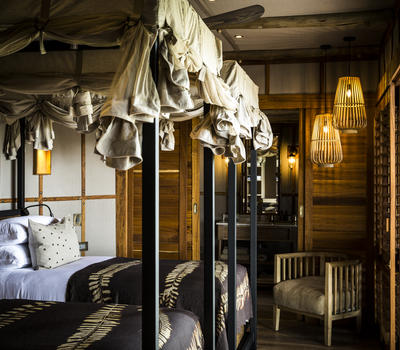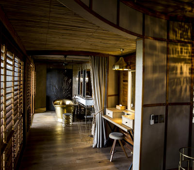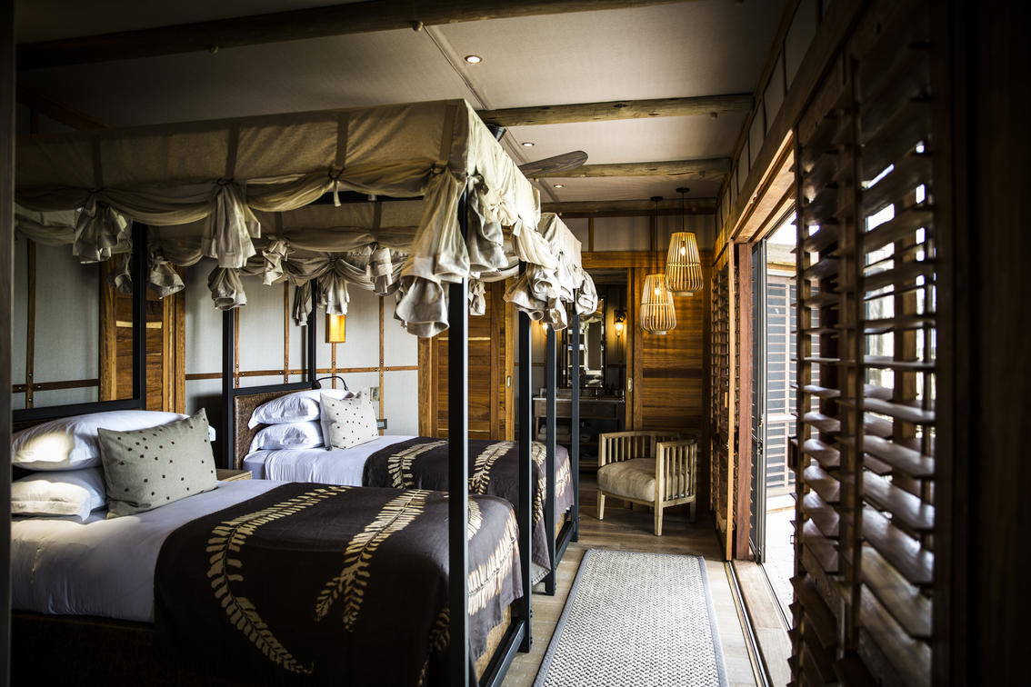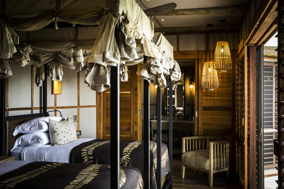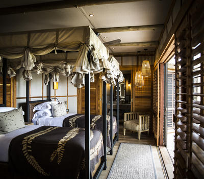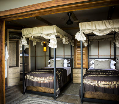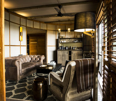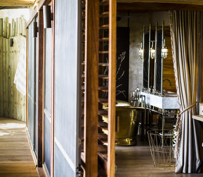 Each spacious canvas suite is a private oasis. The suites comprise an indoor lounge area, separate bedroom and bathroom, indoor and outdoor showers, elegant copper bathtub, and an outdoor private sala with a double day bed, sunken couch, private plunge pool, and wrap-around veranda – a total immersion in the bush.