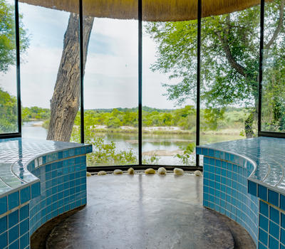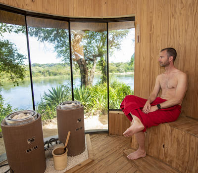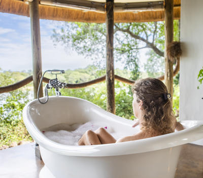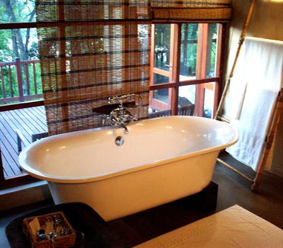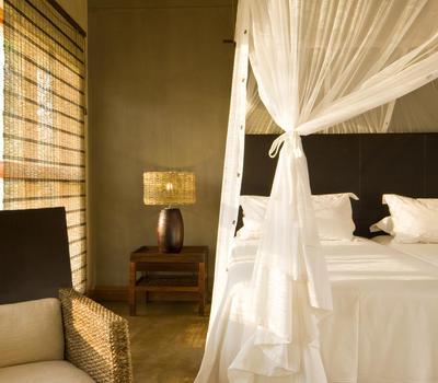The large beds are covered with a stylish mosquito net and all rooms are air-conditioned.