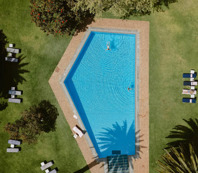 The Oasis accommodation wing with main family pool and Oasis Bistro