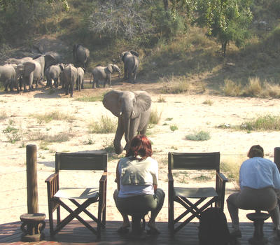 Rhino Post Safari Lodge - Elephants at the Deck