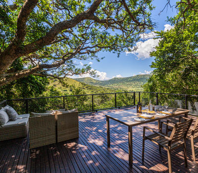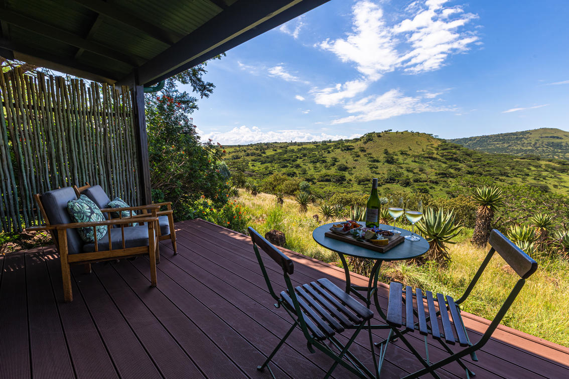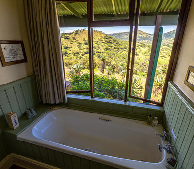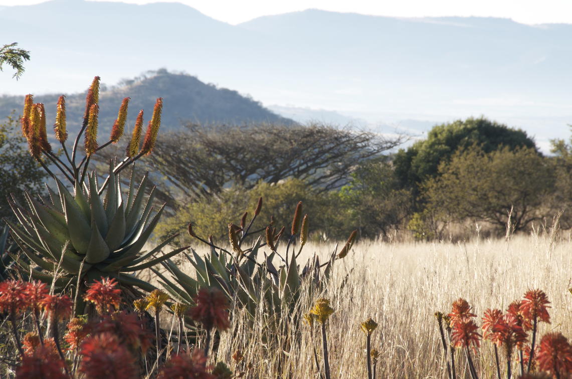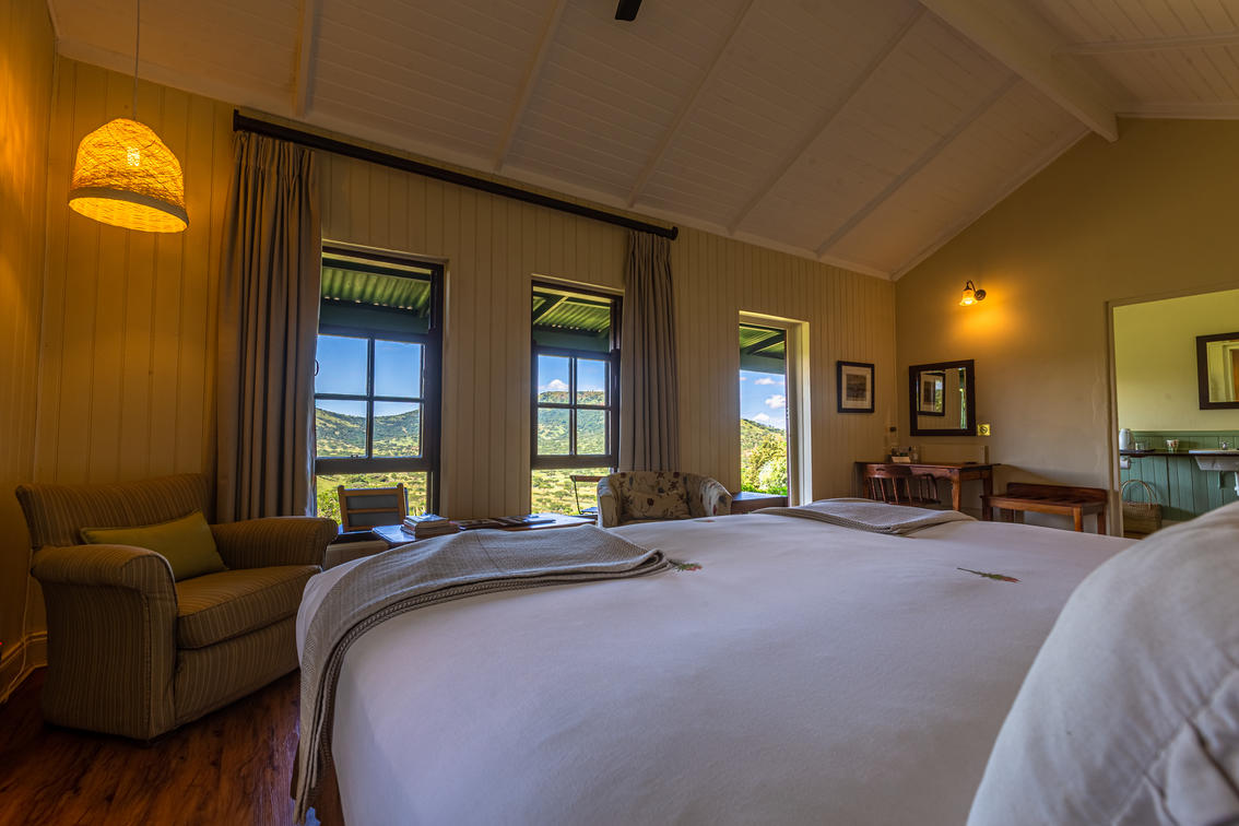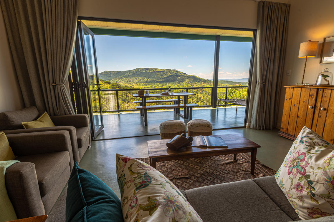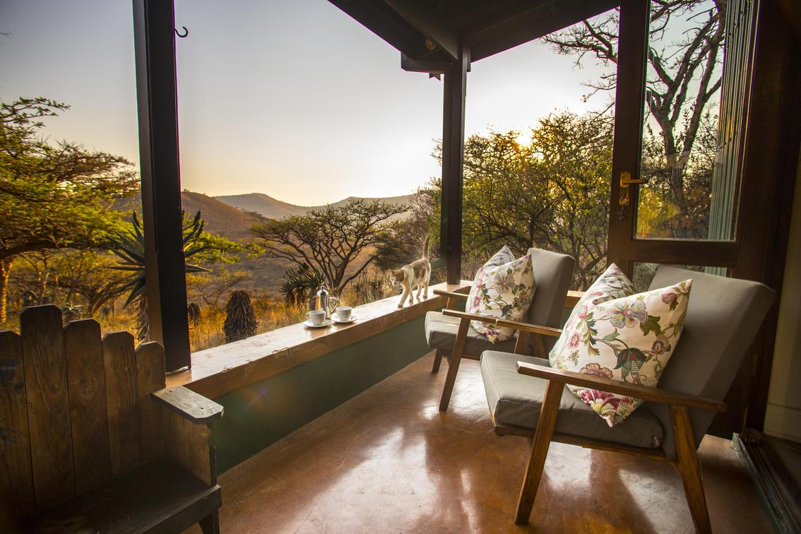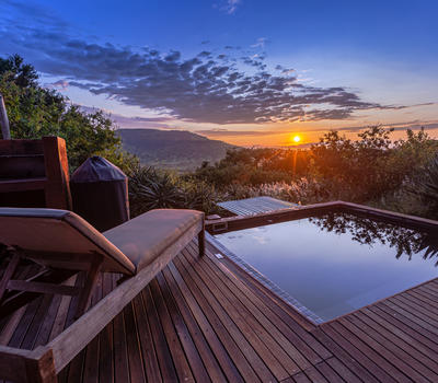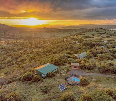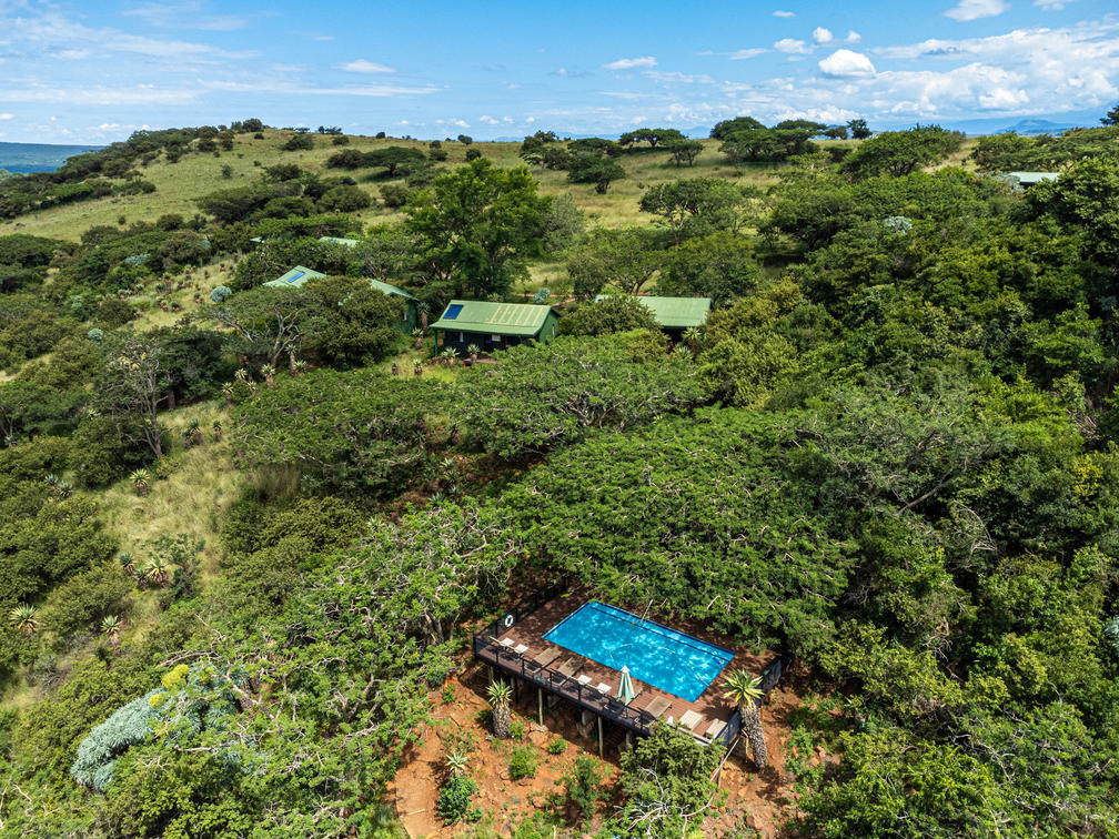 Burchells Cottage with its own private pool looks north east towards Spioenkop and the Game Reserve