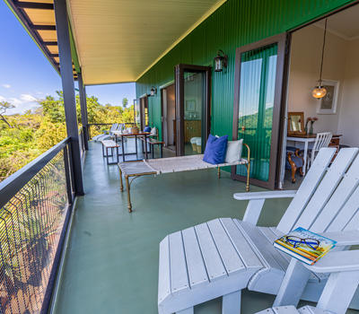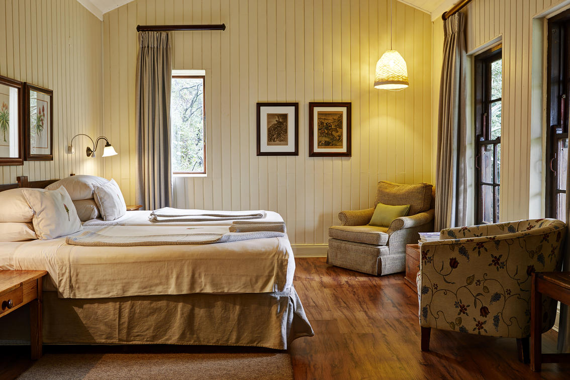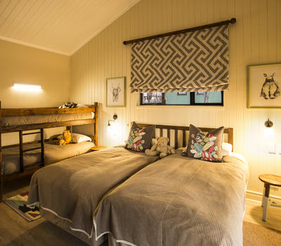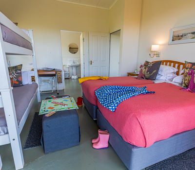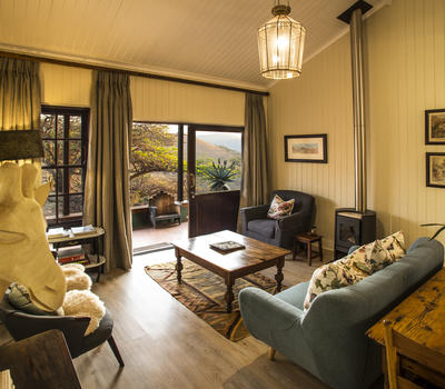 Burchells Cottage has central lounge and dining area separating the rooms.