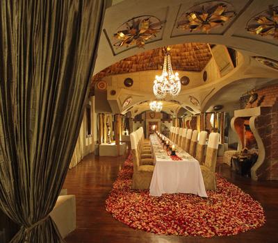 Maasai meets Versailles, ornate intreriors with traditional Maasai manyata exteriors