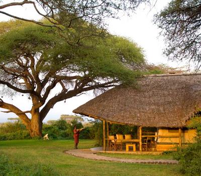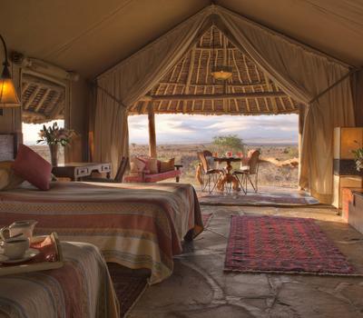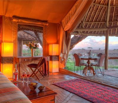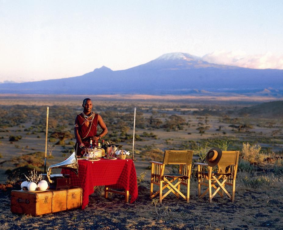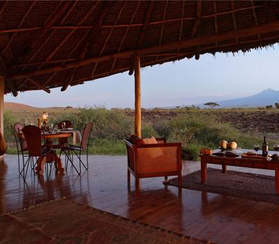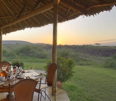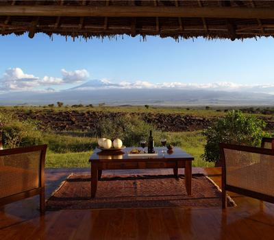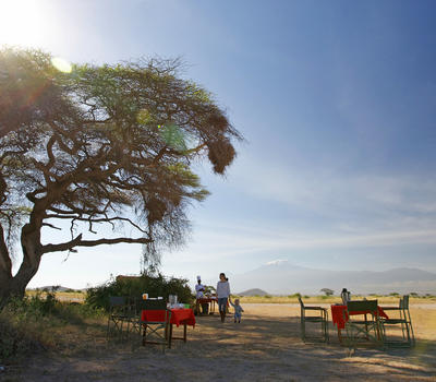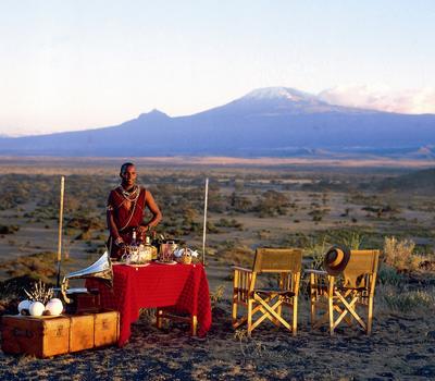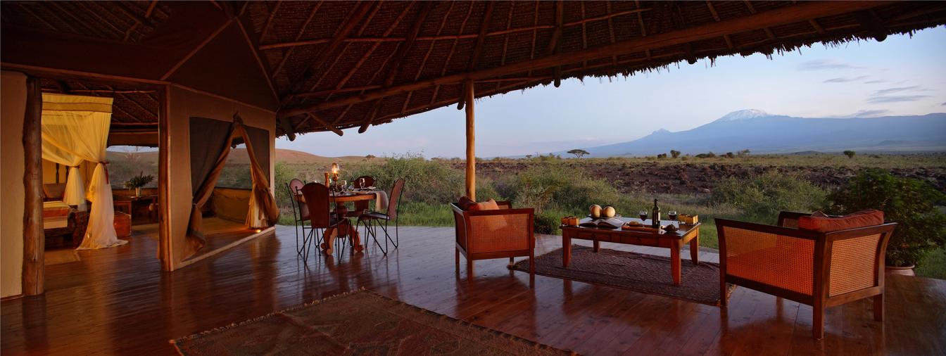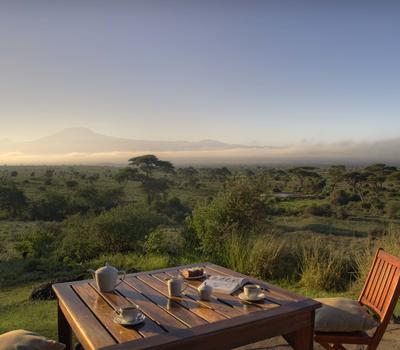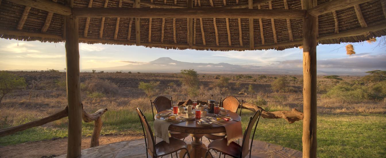 Breakfast on the verandah of the Family Tent with Kilimanjaro