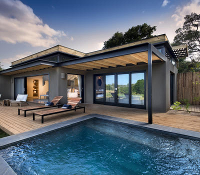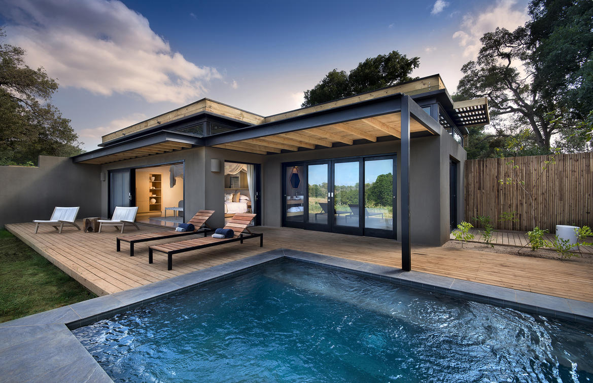 One of four exclusive waterside havens for both couples and families, each with its own plunge pool and deck offering the best game-viewing seats in the house .