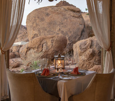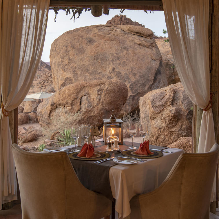 Chiwani Safari Camps' Mowani Mountain Camp Firepit and Dining Area