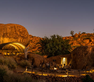 Chiwani Safari Camps' Mowani Mountain Camp Firepit and Elevated Lounge