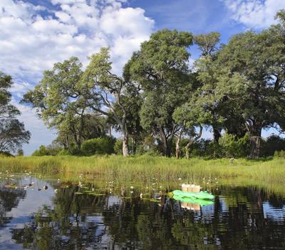 A combination of canvas and bleached timber, taking inspiration from the water lily
