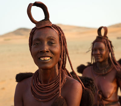 Himba women are famous for covering themselves with otjize paste [a cosmetic mixture of butterfat and ochre pigment]
