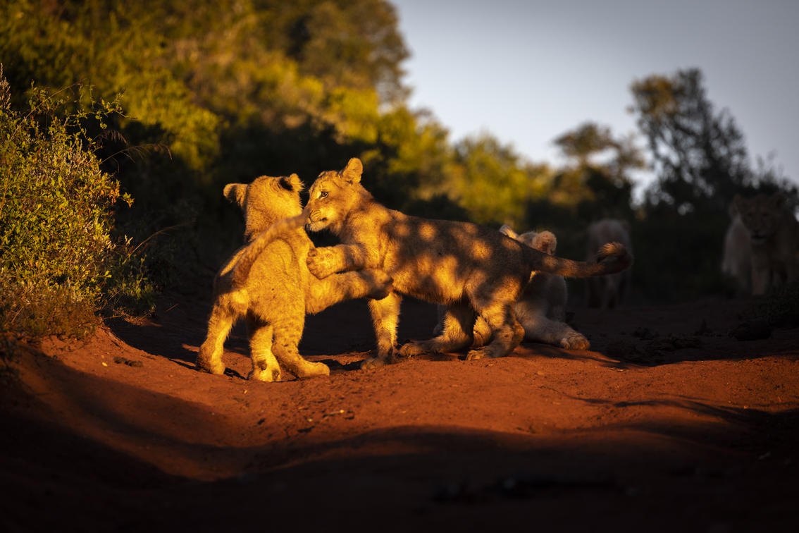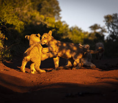 Lion cubs playing in the sun
