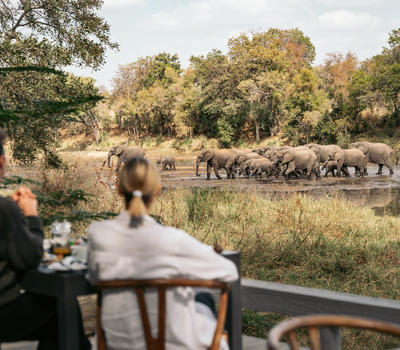 Main Lodge with a deck enjoying expansive views of the river and waterhole