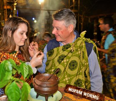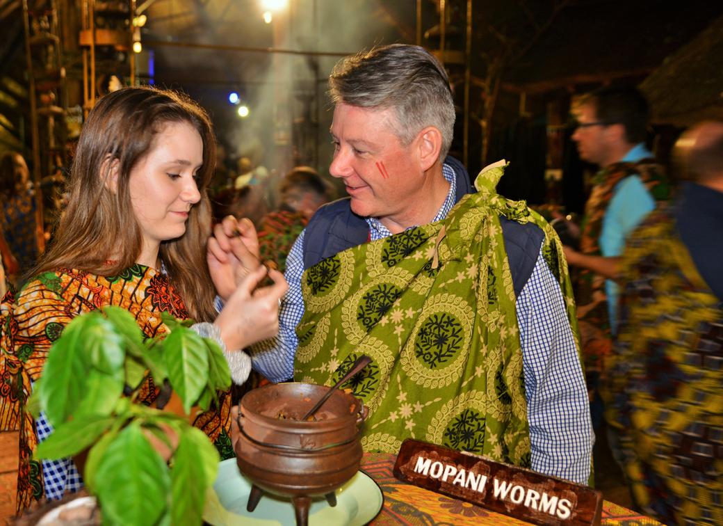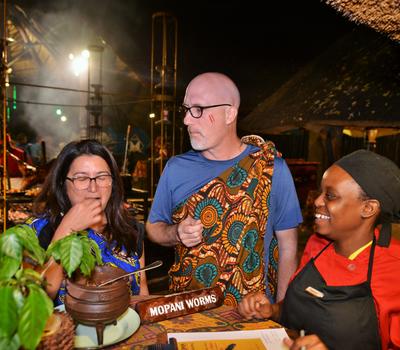 Guests enjoying Mopani worms