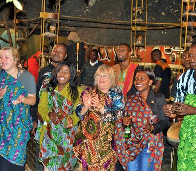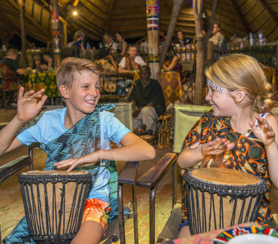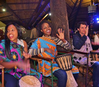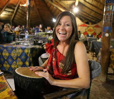 A guest enjoying the interactive drumming at the Boma - Dinner and Drum Show