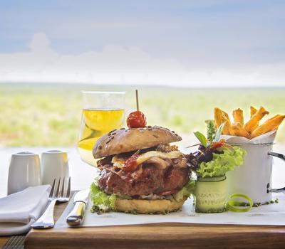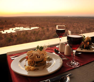 The restaurant’s decor is luxurious, with a traditional Africa safari flare and just the right atmosphere in which to relax and relive the day’s animal sightings