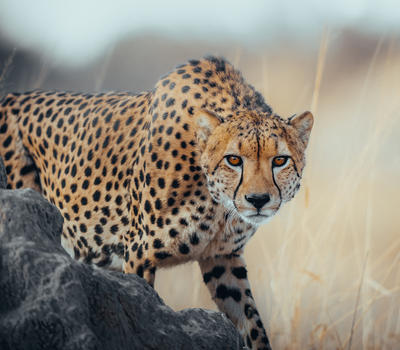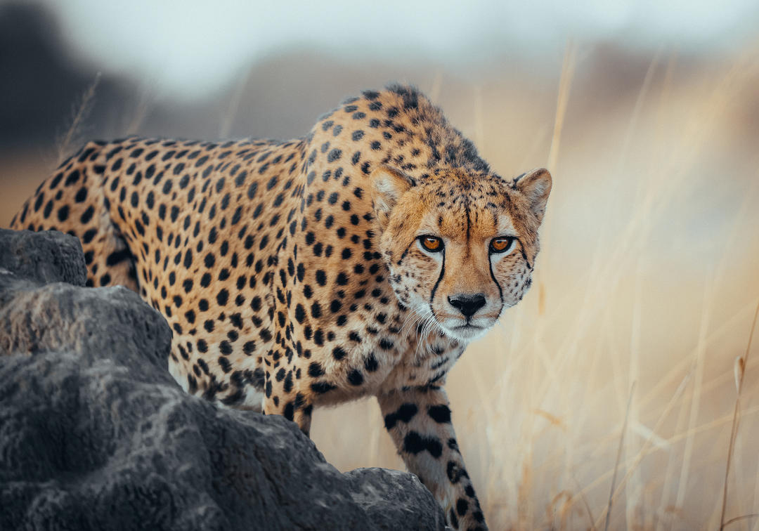 Cheetah use the elevation of a termite mound to scan for prey.