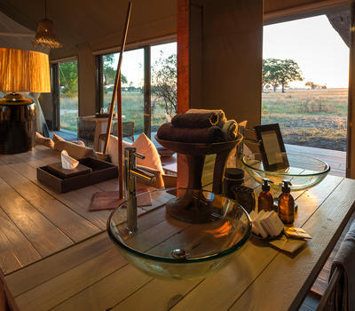 Revel in the space and privacy of Linkwasha’s nine expansive tented suites, which overlook a waterhole frequented by thirsty herds of buffalo and antelope.