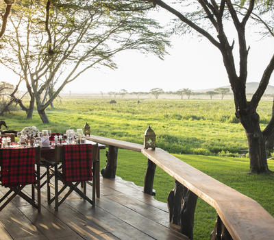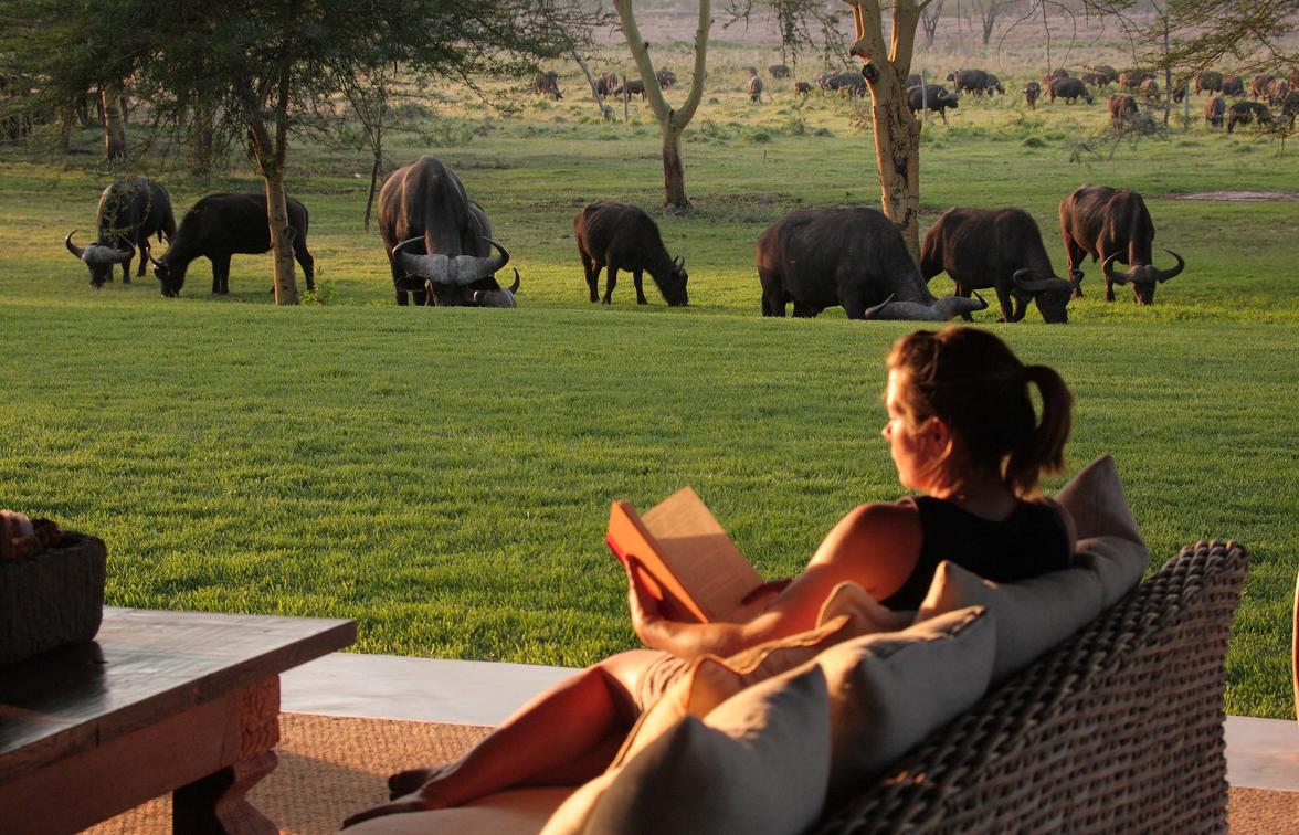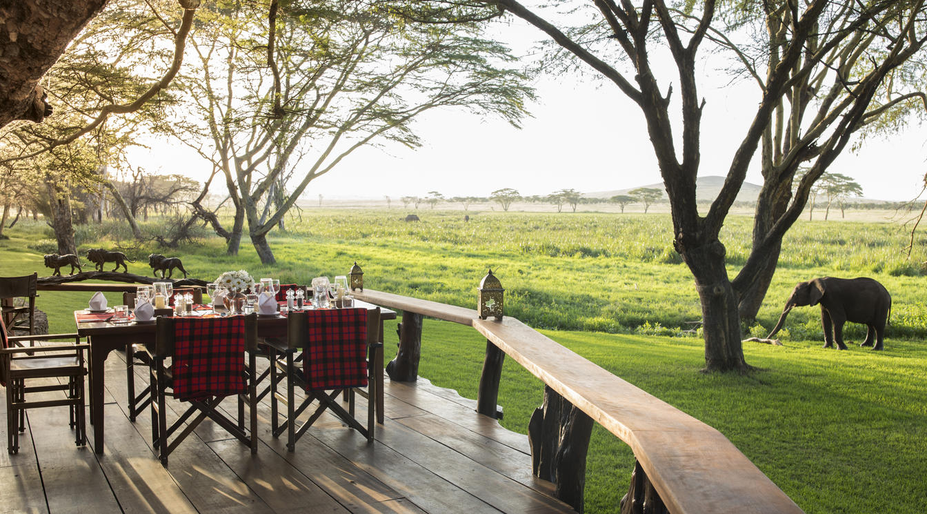 The deck is the prime game-viewing spot at Sirikoi, with views over the waterhole, natural wetland and the green lawns around the lodge