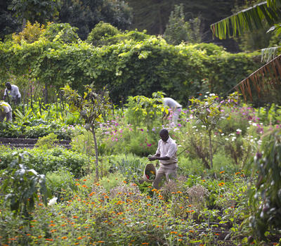 The prolific 1 acre vegetable garden at Sirikoi with over 80 different fruits, vegetable and herbs that supply the kitchen