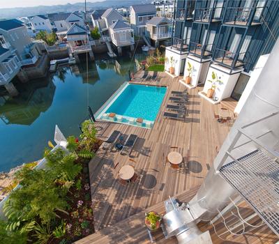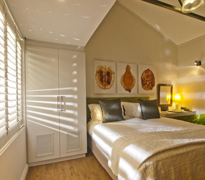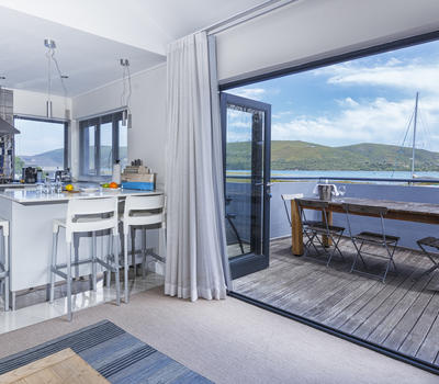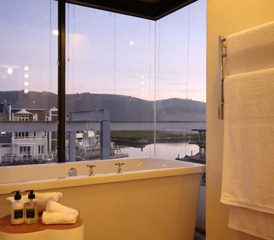 Some bathrooms enjoy views of the knsyna heads, with blinds for total privacy.