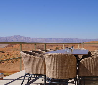 overlooking the desert from the Namib Dune Star Camp's terrace