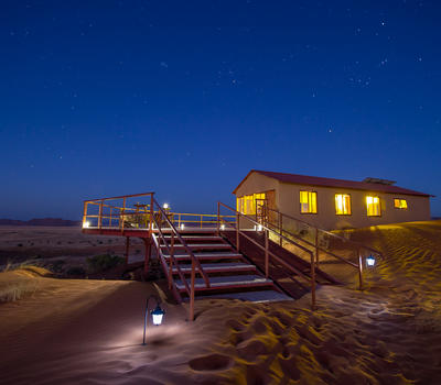 Welcome to Namib Dune Star Camp! Best described as a soft adventure camp, Namib Dune Star Camp offers the thrill of being out in the desert yet provides luxuries like soft beds and hot showers..