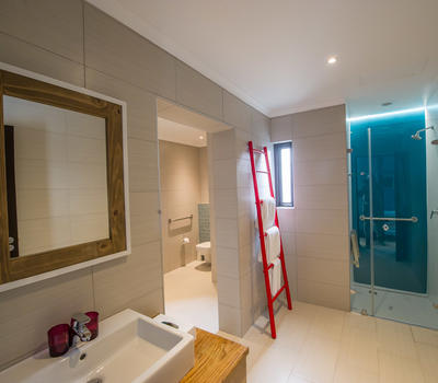 The modern, spacious rooms reflect the colours of the ocean and the lighthouse. They each have twin beds and are equipped with en suite bathrooms, air-conditioning, tea/coffee facilities, fridge, hairdryer and a safe.