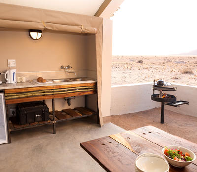 Desert Quiver Camp Patio with kitchenette and barbeque