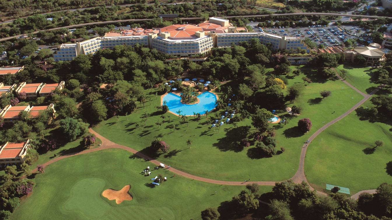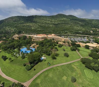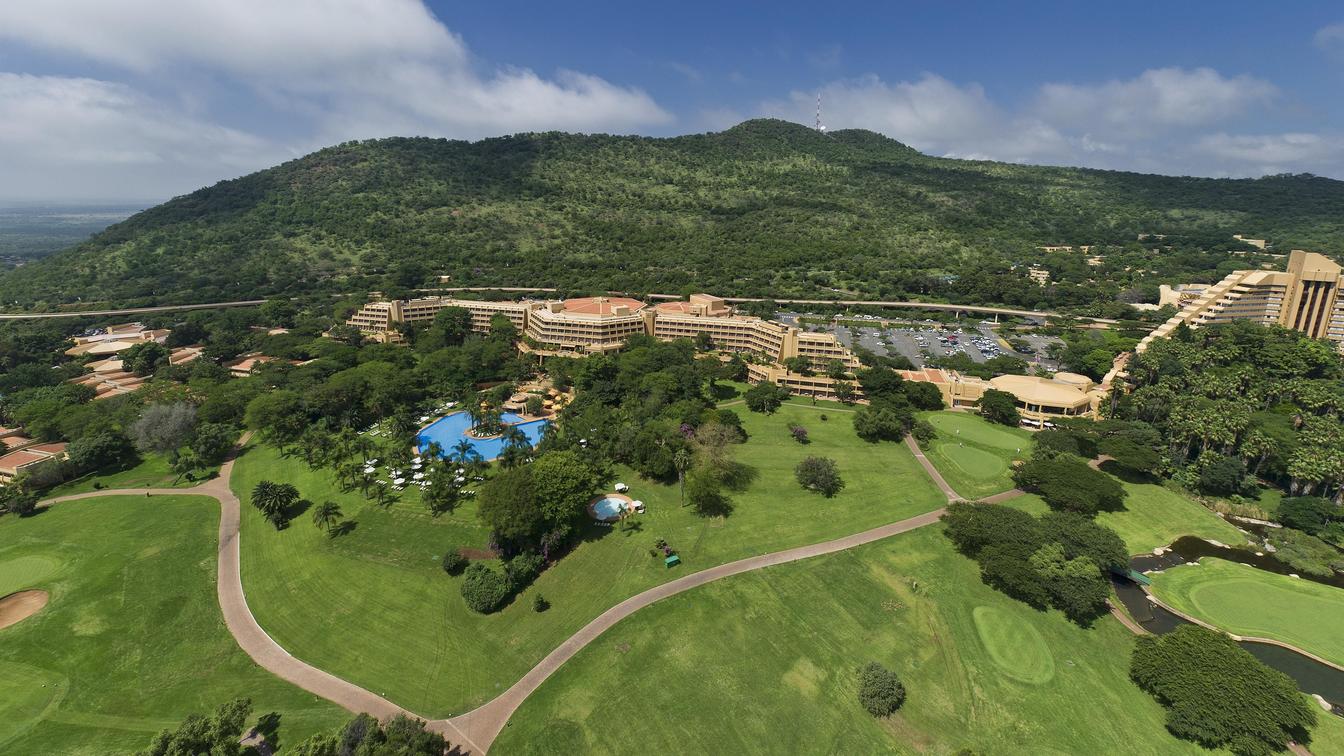 Aerial view of Sun City Hotel and Gary Player Golf Course