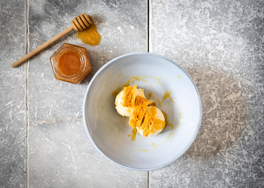 Home-made honey ice-cream made with the single blossom Grootbos Erica irregularis honey.