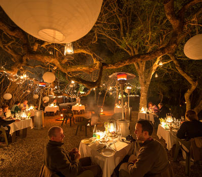 A magical boma under Milkwoof trees for experiential dining.