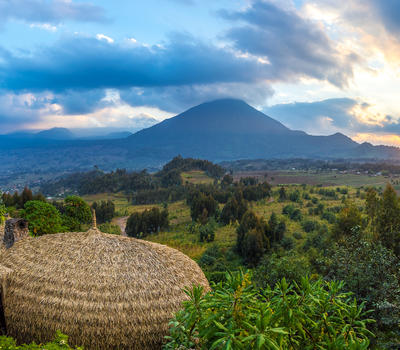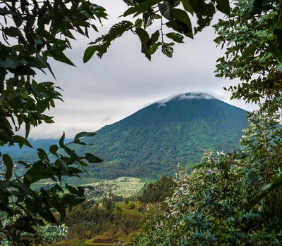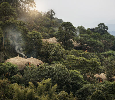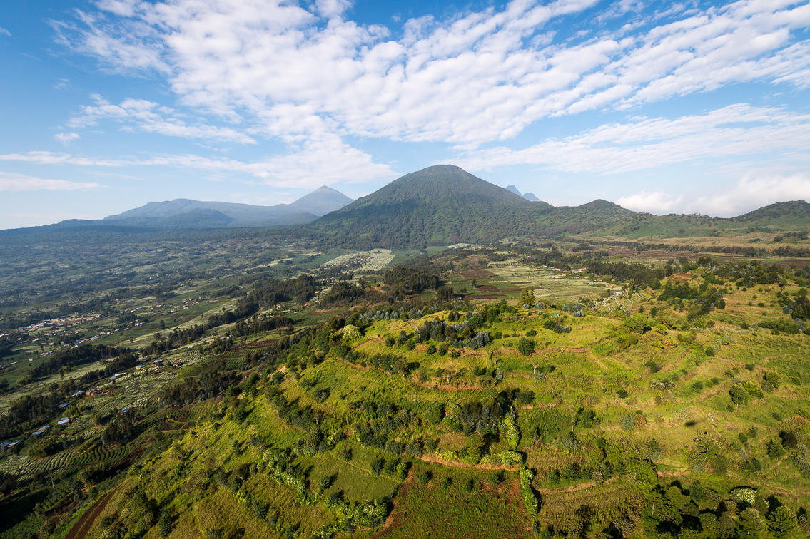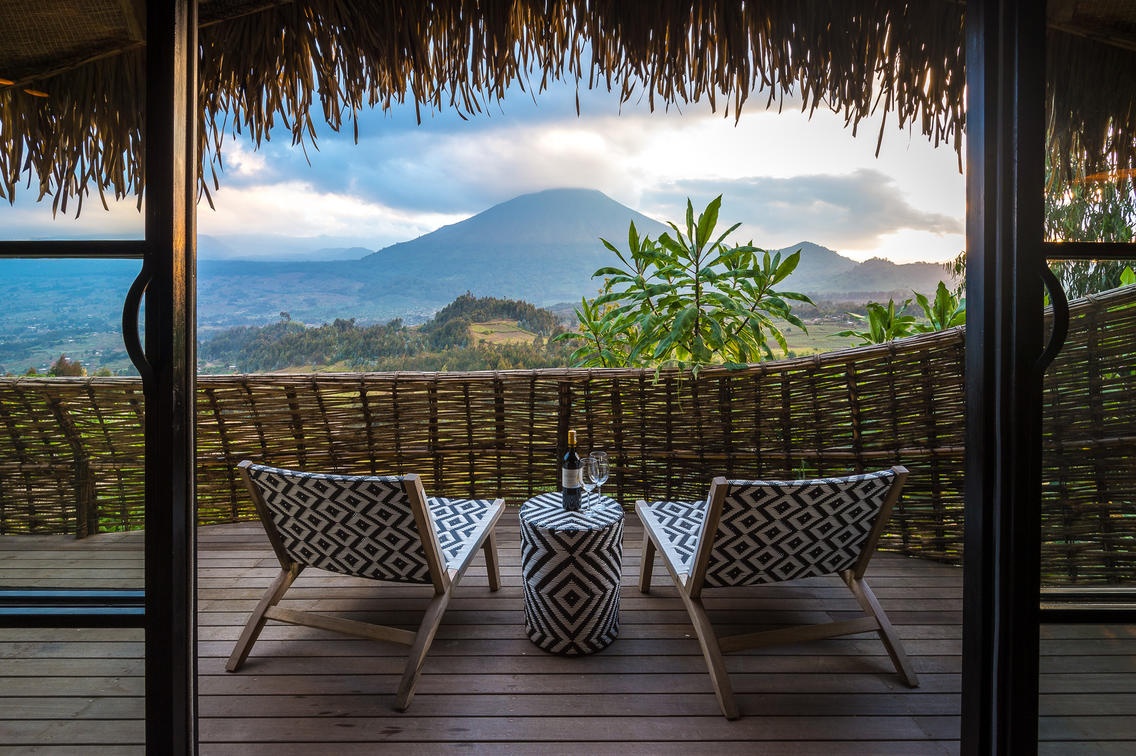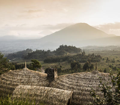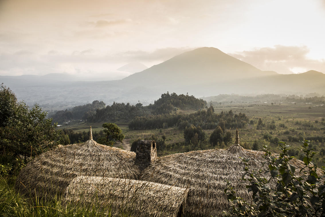 Wilderness Bisate looks over to Mount Bisoke, one of the active volcanoes in the Virunga Mountains.