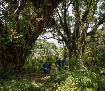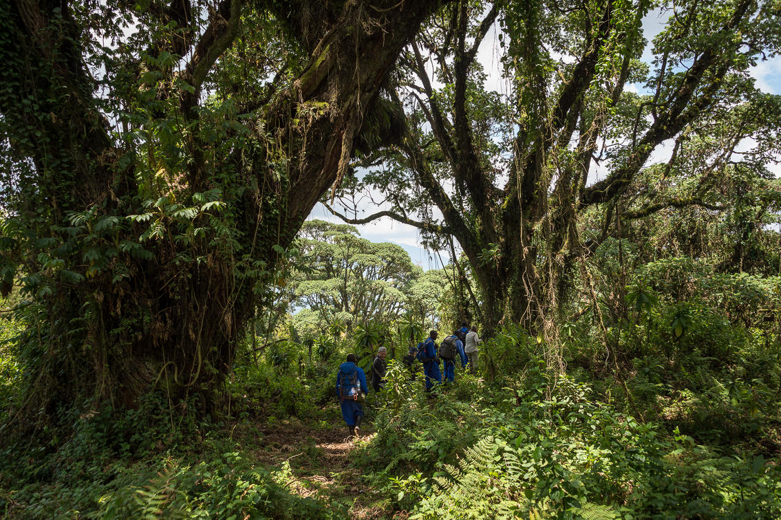 The trail to Dian Fossey's tomb takes trekkers through impressive rainforest vegetation.