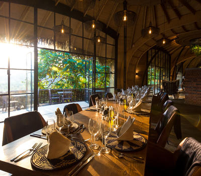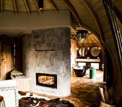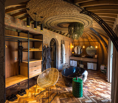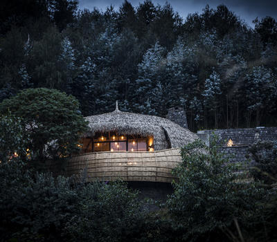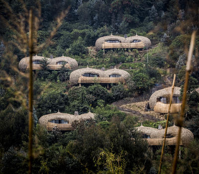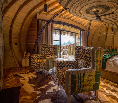 Wilderness Bisate's sophisticated architectural design is rooted in Rwandan building tradition.