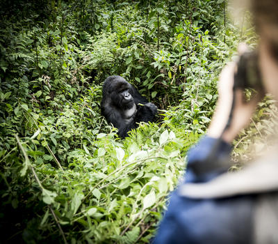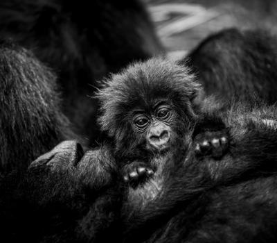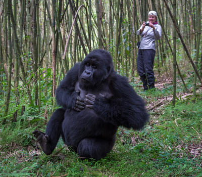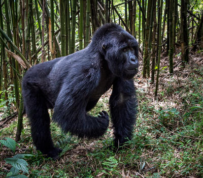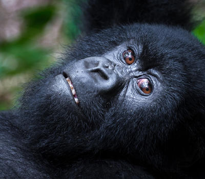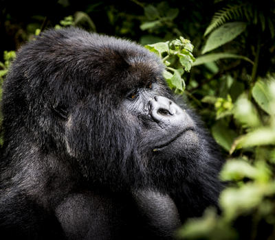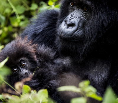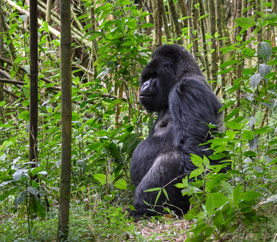 Although strong and powerful, mountain gorillas are also gentle and shy.