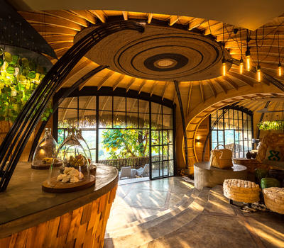 Splashes of emerald green throughout the lodge are redolent of the surrounding rainforest.