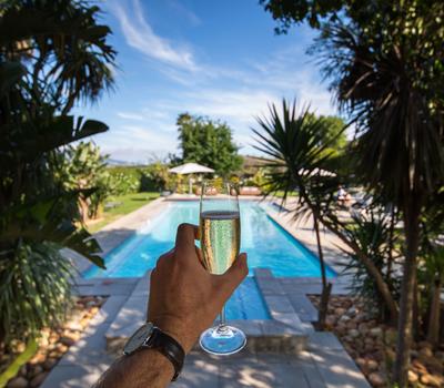 Large solar heated main pool with raised deck Lapa with stunning views over surrounding Vineyards