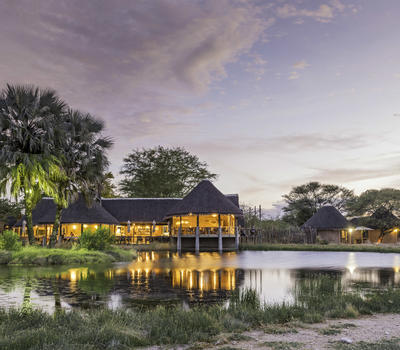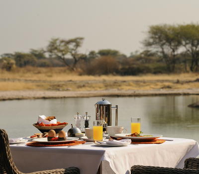 The lounge - a perfect place to relax and view the waterhole at Onguma Bush Camp