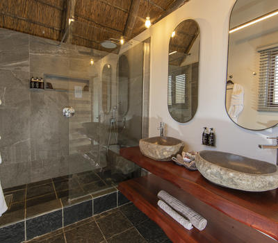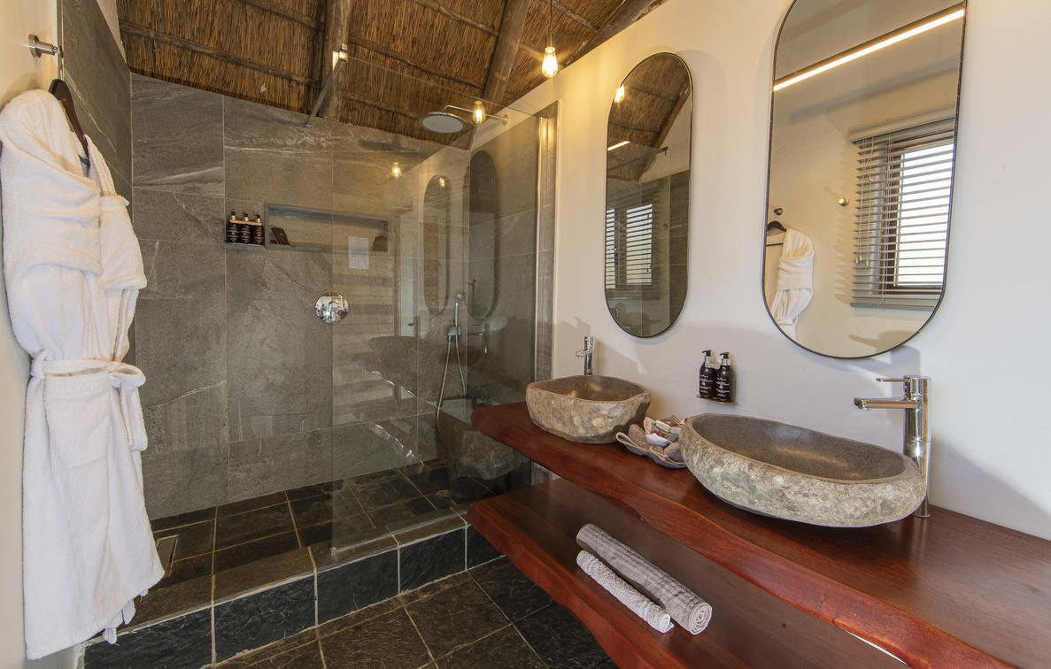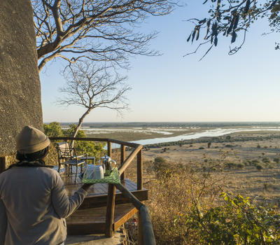 Staggered down the escarpment are decks to relax and enjoy the endless vistas across the Caprivi Strip.