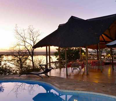 Cool off in the swimming pool overlooking the Chobe Flood Plains
